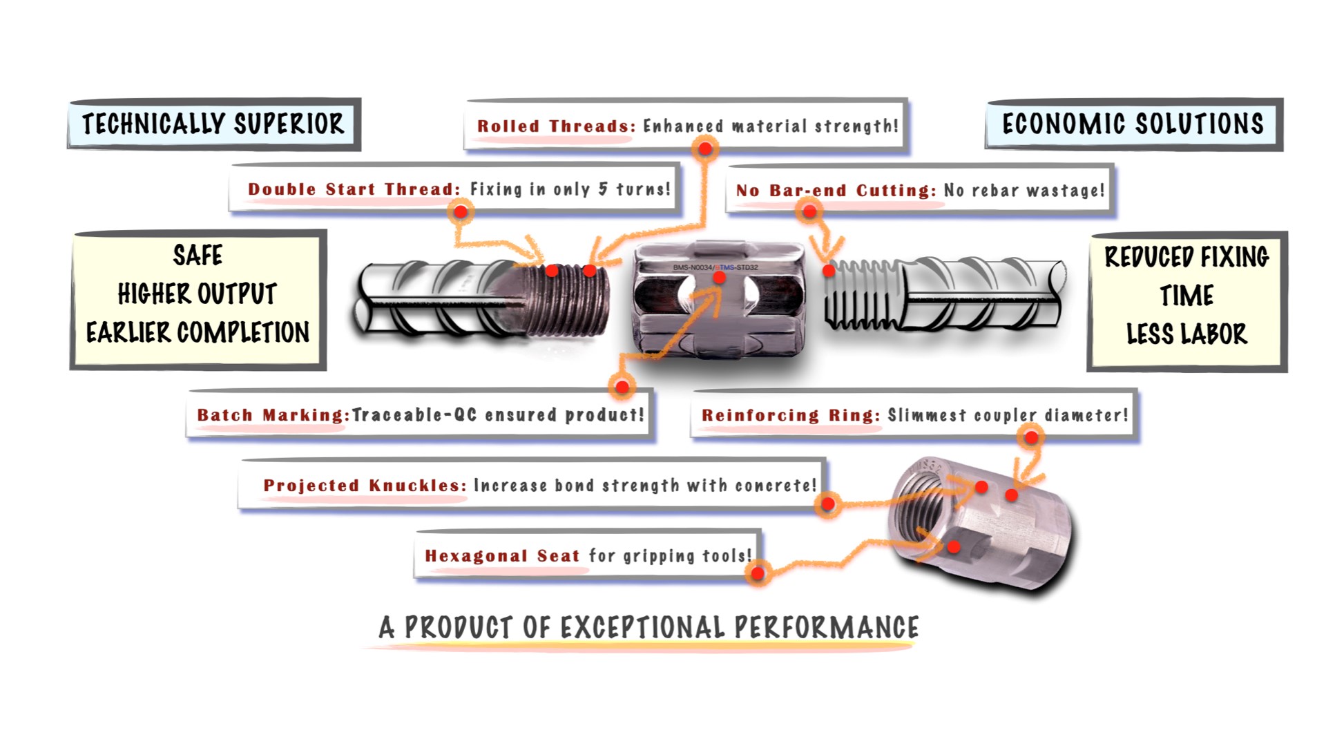 The world’s longest and tallest structures stand firm on the strongest foundations and the most reliable connections. Powered by the best mechanical coupler, engineering boundaries are pushed to new heights, ensuring unmatched safety and durability. With our robust, innovative design, we are building the skyscrapers and mega projects of the future!