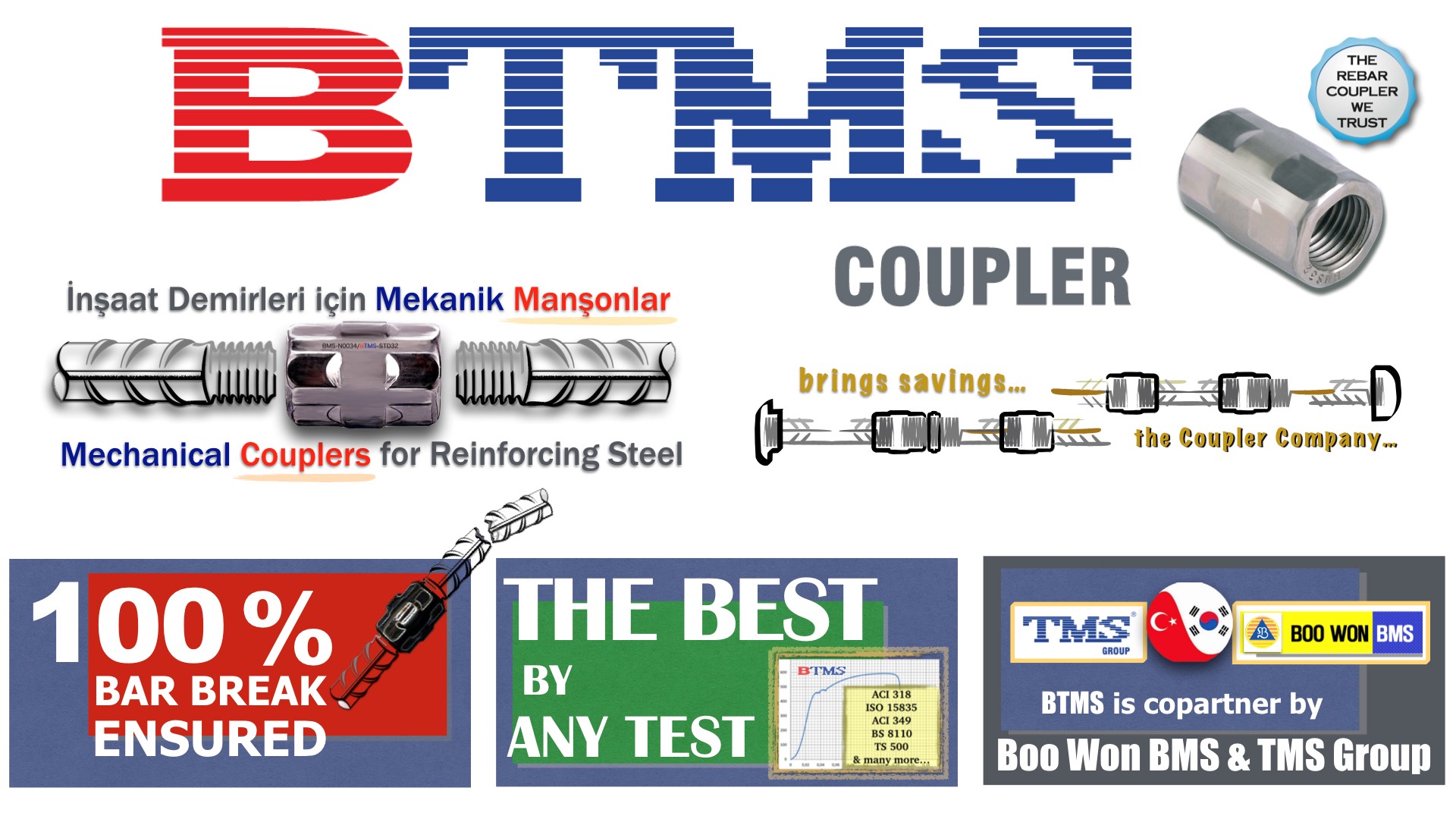 The BTMS is a co-partnered JV, by Boo Won B.M.S. Co. LTD. of Korea and TMS Turkey, aiming at producing the very best reinforcing coupler system available; the “BMS Parallel Rolled Thread System”.
